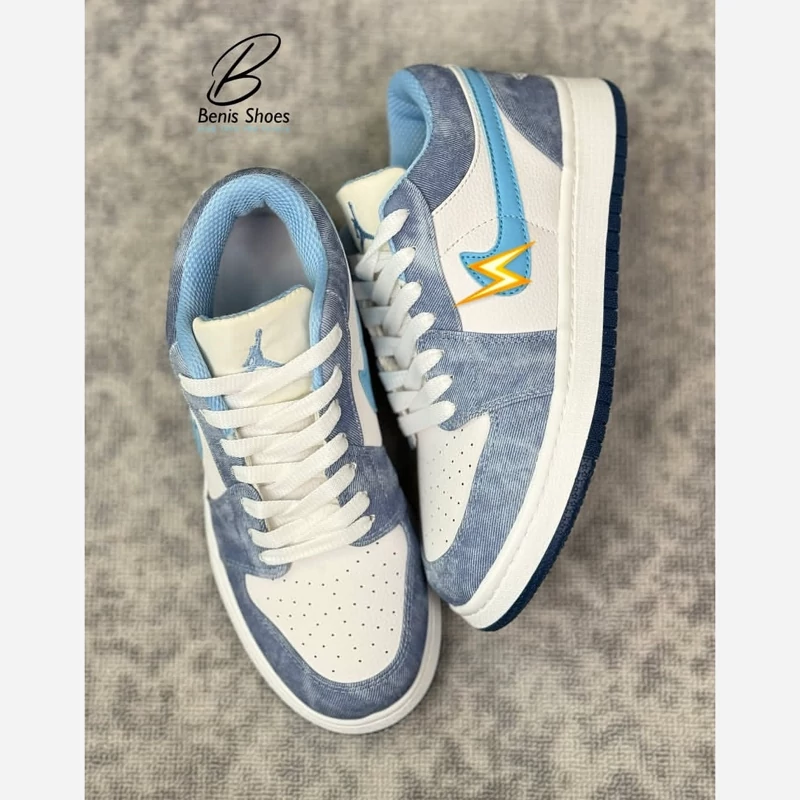 سلام خدمت.دوستان کتونی جردن در رنگبندی جذاب کیفیت کار به ضمانت .زیره کار عطری دو تیکه دور دوخت هست بسیار با کیفیت رویه کار بیاله وارداتی هست به جز اسلاید آخر که رویه کار رنگش به سبک جین هست